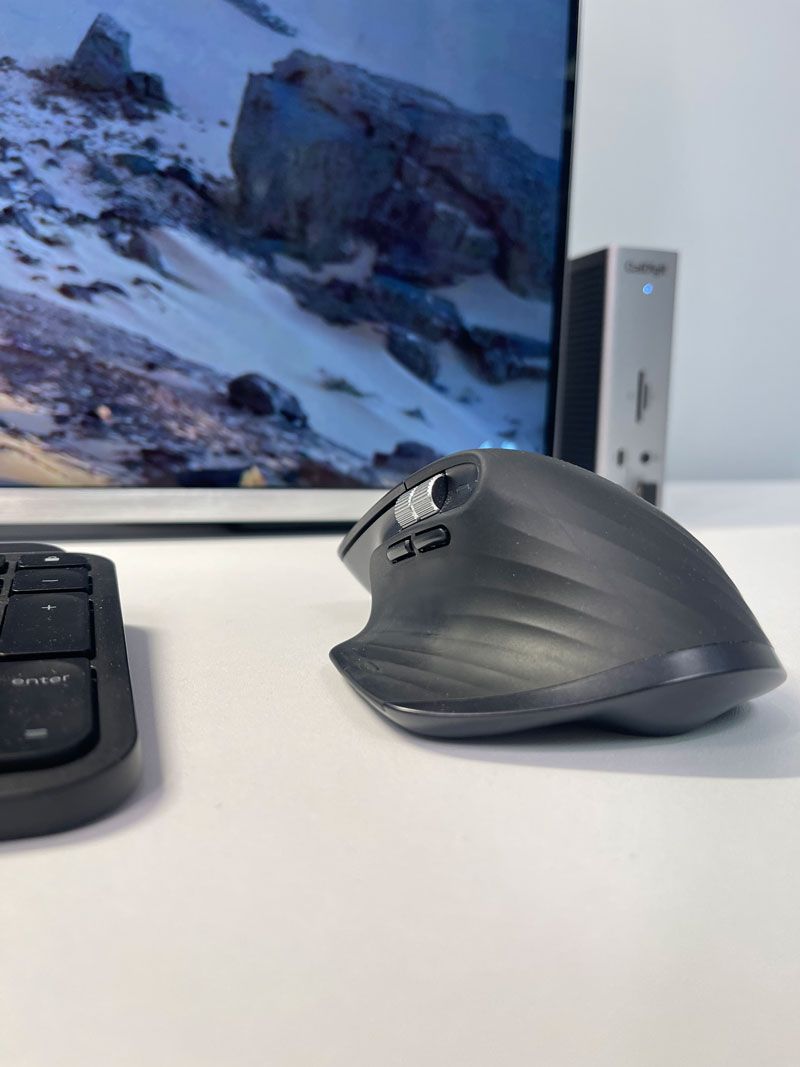Space Saving Vertical Mount. Free up 1 sqft of desk space.